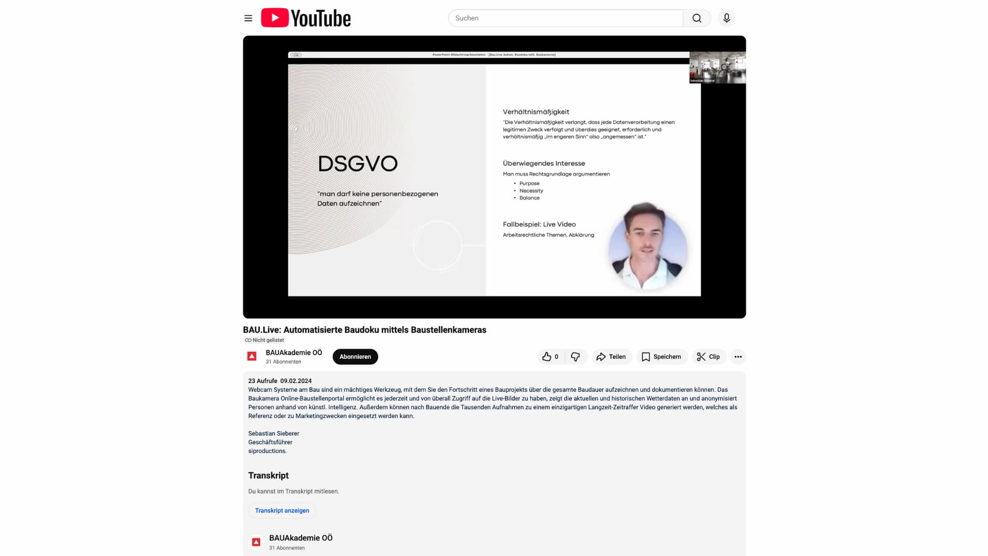 Wir hatten die Ehre, im Rahmen des Formats Bau LIVE einen Vortrag für die Bauakademie Oberösterreich und die ZAB Zukunftsagentur Bau GmbH zu halten. Thema war die moderne Baustellendokumentation mittels Baukameras.