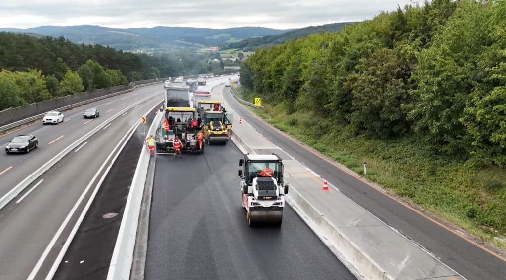 STRABAG saniert für ASFINAG acht Kilometer der Westautobahn A1 und setzt dabei auf eine besonders nachhaltige Bauweise: In der Tragschicht kommt ein Mischgut mit beeindruckenden 40 % Recyclingasphalt zum Einsatz – doppelt so viel wie üblich!
